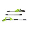 Der 24V Akku-Hochentaster von Greenworks ist ideal für kleinere Bäume und Büsche. Der Verlängerungstihl ist 3x unterteilt und erreicht eine maximale Gesamtlänge von 2,4m. Damit können höhere Bereiche von Hecken, Sträuchern und Bäumen problemlos bearbeitet werden. Ohne die Verlängerung können niedrigere Äste geschnitten werden ohne sich nach hinten beugen zu müssen. Dank automatischer Kettenölung ist die richtige Schmierung garantiert und somit der Verschleiß auf ein Minimum reduziert. HINWEIS: Das Gerät wird mit 1 x 2 Ah Akku und 1x Universal-Ladegerät als Set angeboten.