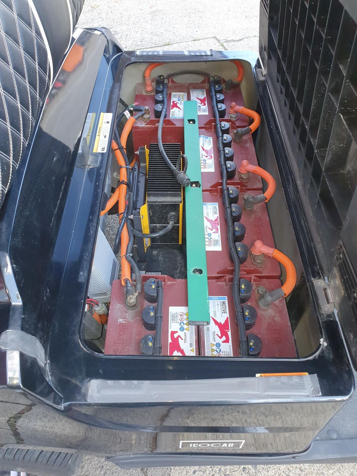 IcoCar Birdie 3.0 Cargo Golfcar, Baujahr 2021, nur 939 km, in 1A Zustand. Mit Ladefläche (110×60 cm), On-Board-Ladegerät, Lichtanlage, Alurahmen, USB, 6×8 V Trojan-Batterien (1 Jahr alt), Zentralbefüllung, Premiumsitze, Classic-Lenkrad, 10″ Alufelgen, 7″ Digitaltacho. Straßentypisierung (10 km/h) auf Wunsch möglich.