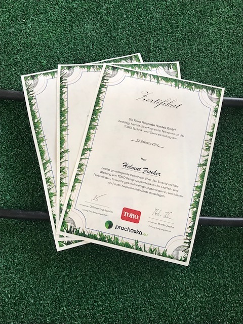 Die Teilnehmer waren aktiv an den Schulungen beteiligt und freuten sich über die feierliche Übergabe des Teilnahme-Zertifikats nach Schulungsende. Bereits seit 1964 setzt Prochaska Beregnungsprojekte in Österreich in allen Bereichen um.