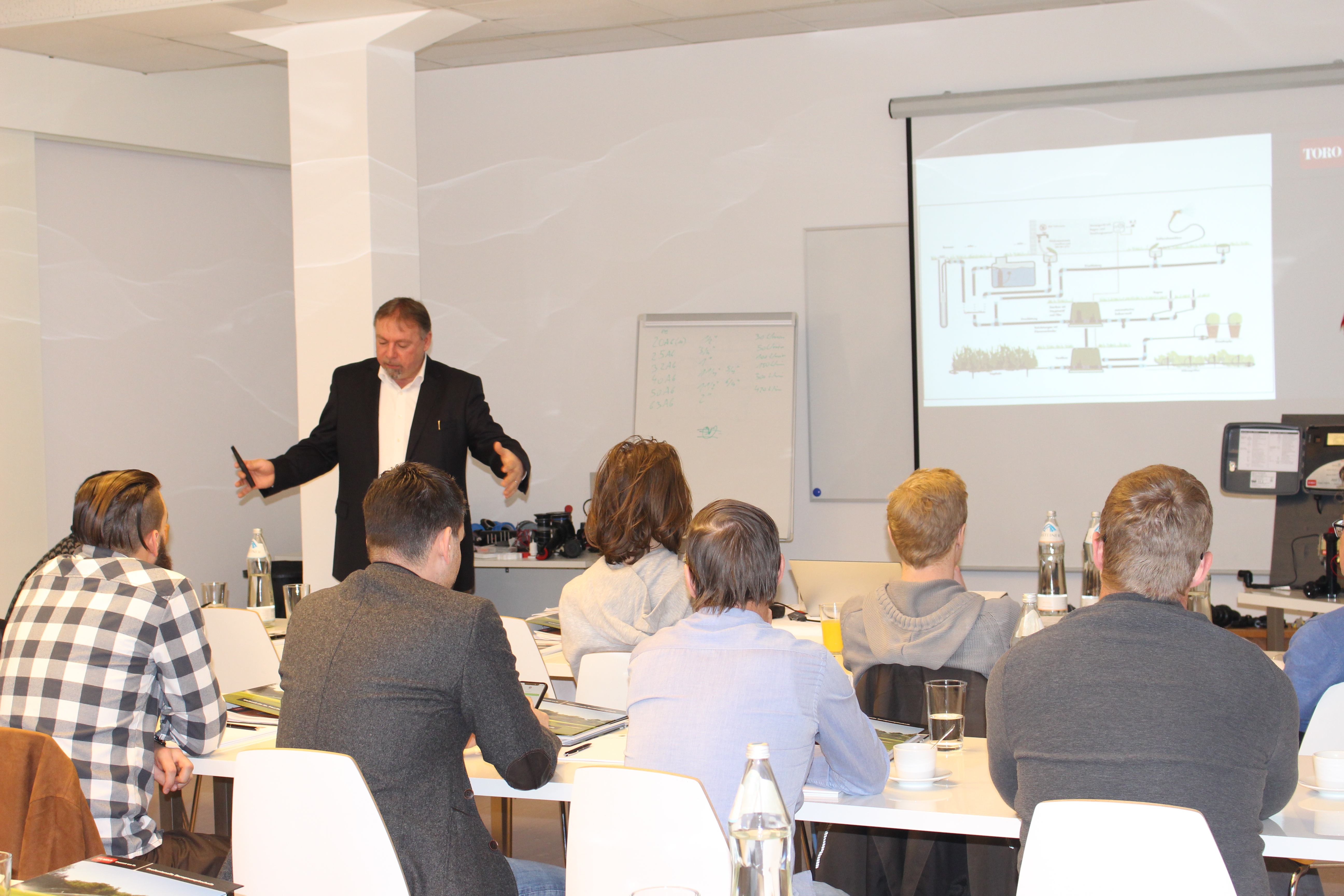 An insgesamt sechs Terminen lud Prochaska im Februar zur TORO Beregnungsschulung 2019 mit dem Themenschwerpunkt „Technik und Wartung von verschiedenen Beregnungskomponenten“ für Garten- und Parkanlagen sowie für Tennis-, Sport- und Golfplätze. Othmar Wukitsevits, Leiter Beregnungstechnik bei Prochaska, Ing. Martin Zecha, Planung und Verkauf und Florian Stampfer, Technik und Verkauf, waren als Hauptreferenten tätig und beleuchteten verschiedene Aspekte der Beregnungstechnik.