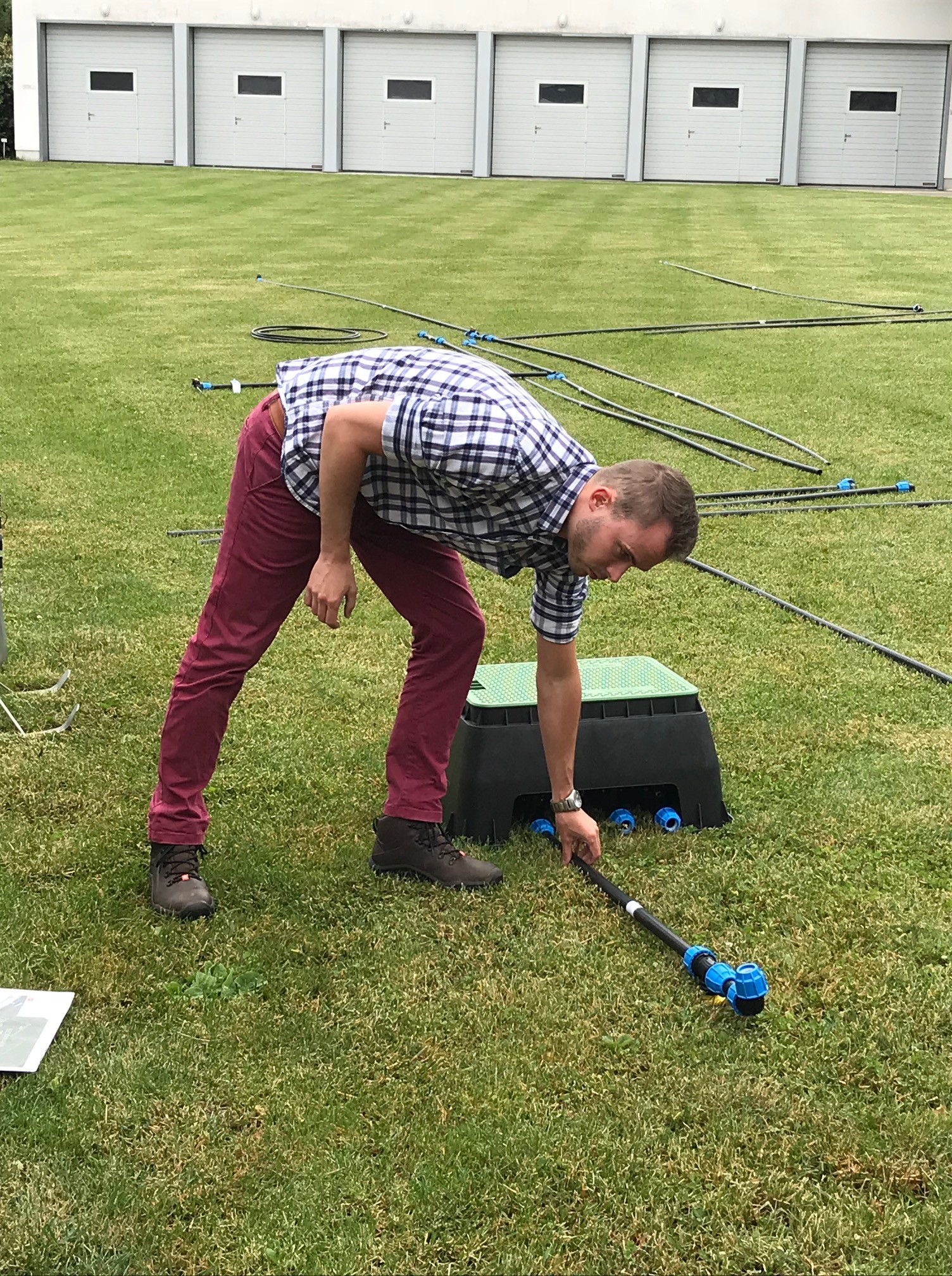Prochaska setzt in Österreich bereits seit 1964 Beregnungsprojekte in allen Bereichen um. Leiter des Teams ist der einzige innungsgeprüfte Beregnungsexperte in Österreich, Othmar Wukitsevits, der im Rahmen des Seminars einen Fachvortrag hielt. Prochaska-Beregnungsexperte Martin Zecha (Planung & Verkauf) baute im Anschluss mit den LandschaftsarchitektInnen vor Ort eine Beregnungsanlage auf!