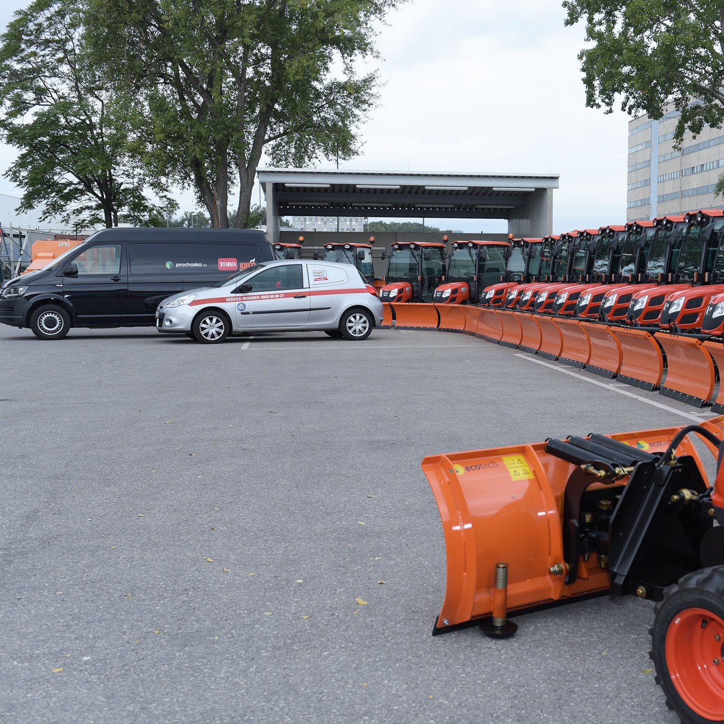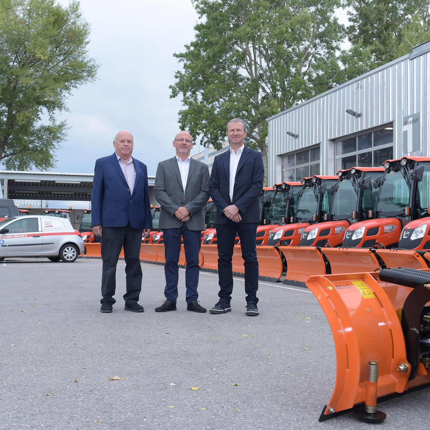 Vienna, September 2019 – Just in time for the beginning of autumn, Wiener Wohnen Haus- und Außenbetreuung GmbH is upgrading its fleet with 20 new KIOTI winter maintenance tractors, equipped with snow ploughs and box spreaders. The aim was to modernize the fleet and to use more environmentally friendly vehicles.