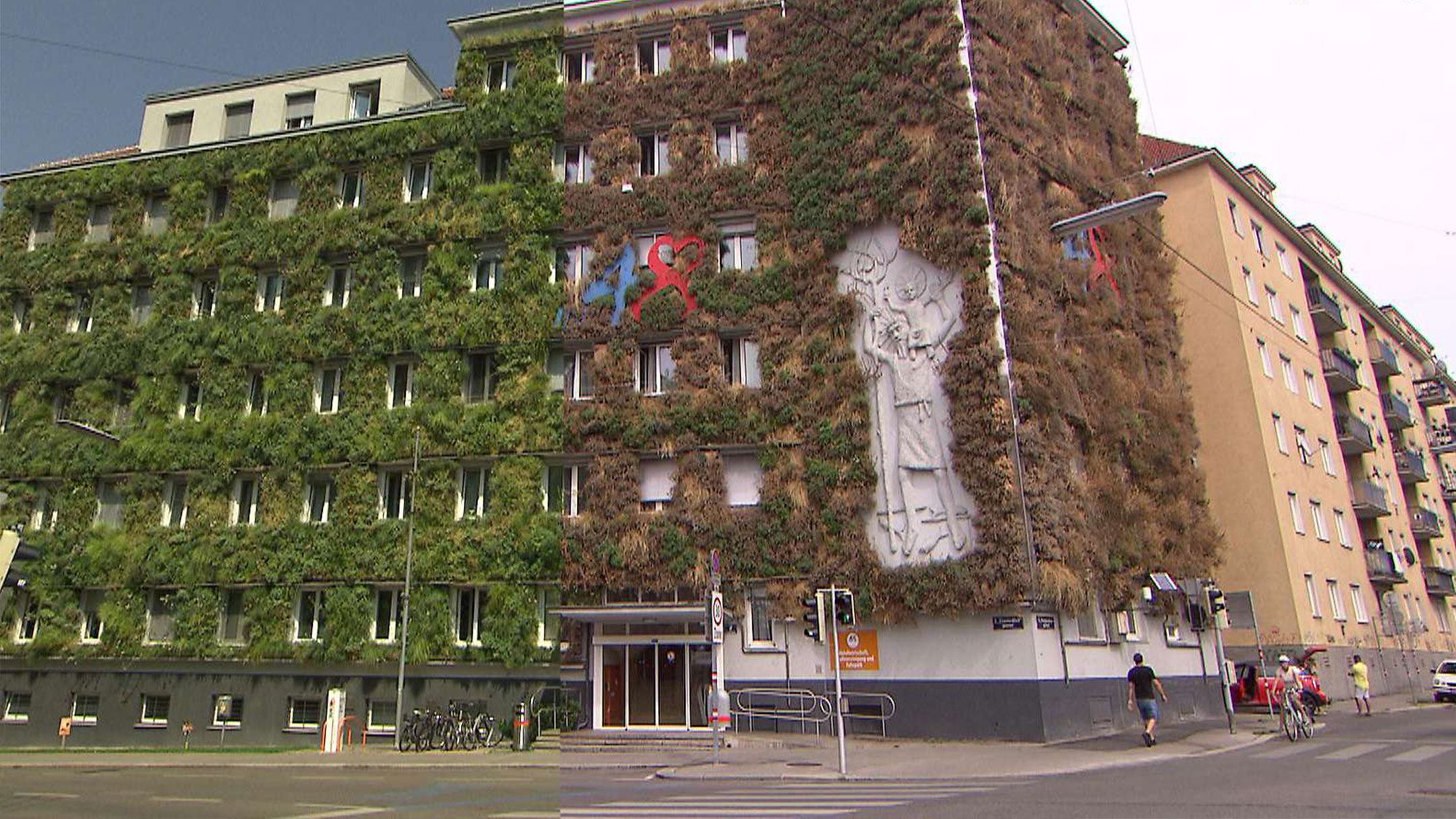 Due to the short-term failure of the irrigation system, only the plant parts on the surface were damaged. Since the roots are intact, the green façade will recover quickly.
