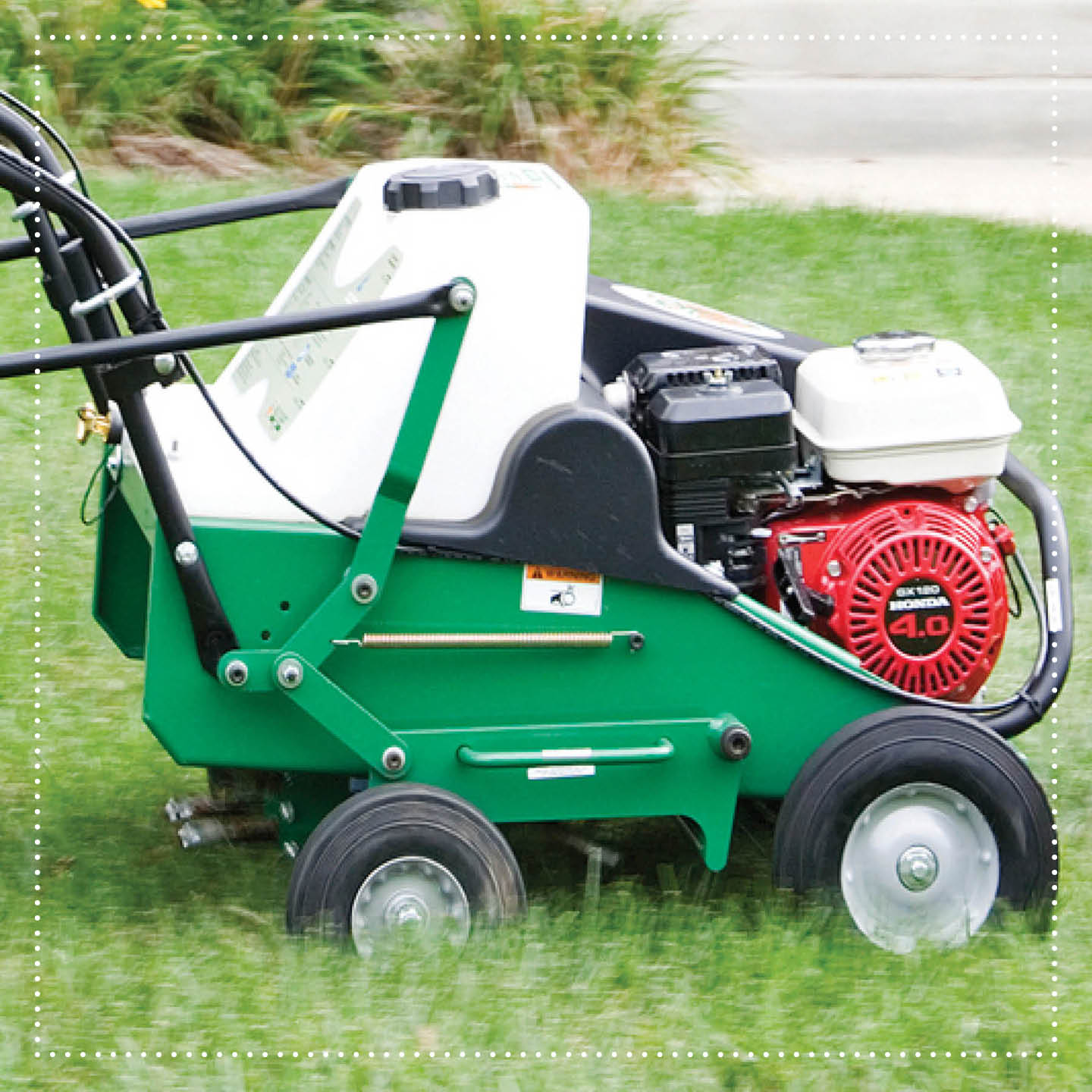 Nachdem die Grasnarbe so kurz wie möglich geschnitten wurde, ist es an der Zeit den Rasen zu vertikutieren bzw. Rasenfilz zu entfernen. Rasenfilz ist eine Schicht aus Laub und abgestorbenen Gras zwischen Erde und Gras – wenn dieser zu dicht wird können Wasser, Luft und Dünger nicht mehr zu den Wurzeln durchdringen. Sonne und Feuchtigkeit werden abgehalten und auch für Schädlinge und Krankheiten ist Rasenfilz ein perfekter Nährboden. Der Rasenfilz wird effizient mit den Qualitätsprodukten von Billy Goat entfernt. Der Power Rake Pro Vertikutierer CR550HCEU wiegt knapp unter 60kg, eignet sich hervorragend für kleinere Grundstücke und entfernt Rasenfilz mit einer Spurbreite von 51cm. Das Modell PR550H von Billy Goat ist mit einem stärkeren Honda Motor ausgestattet und eignet sich dadurch für größere Grünflächen. Das Gerät lässt sich zudem mit optional erhältlichem Zubehör in eine Nachsämaschine verwandeln.