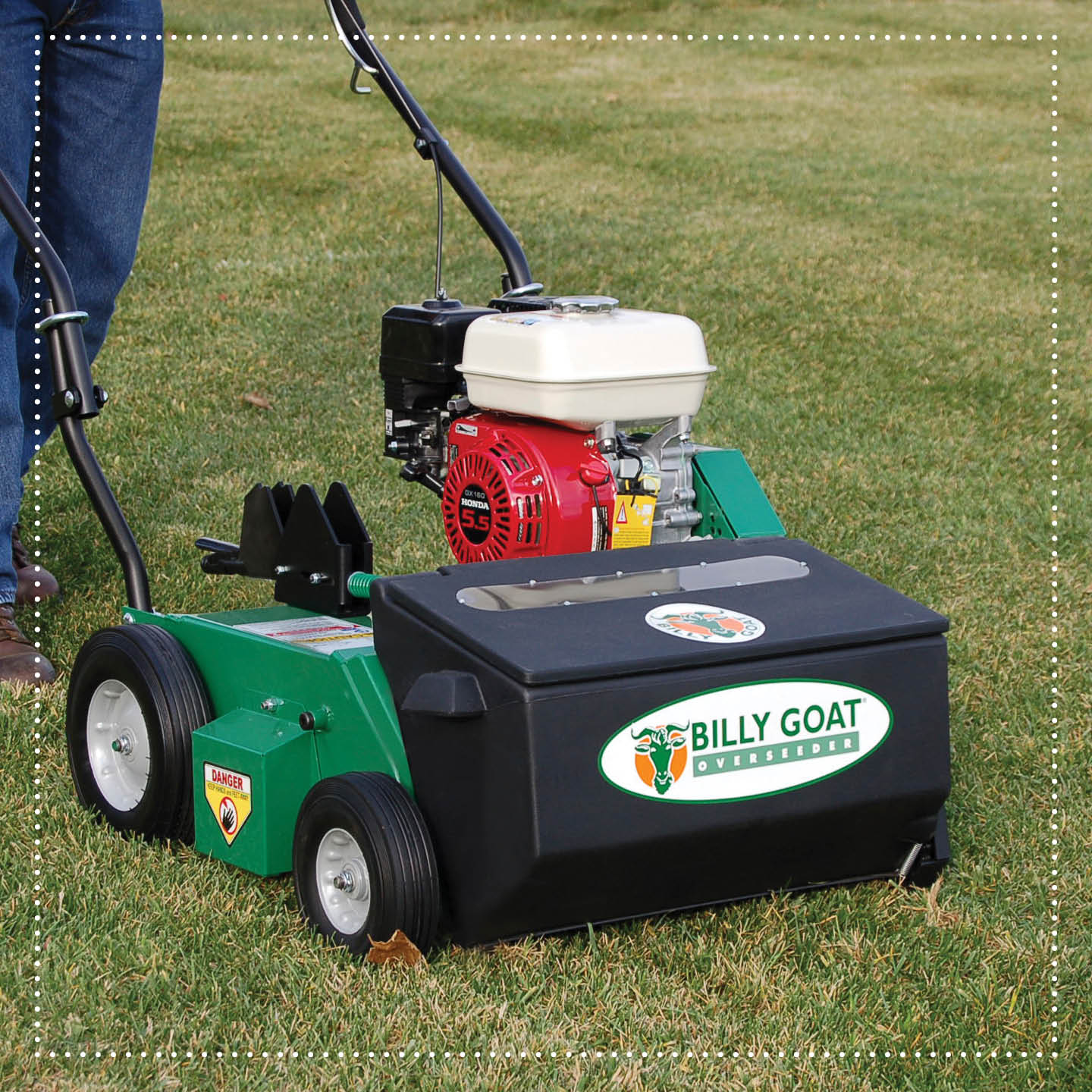 Wenn der Rasen dünn aussieht und kahle Stellen aufweist dann ist es Zeit nachzusäen. Dies gelingt ausgezeichnet mit den hochwertigen Nachsämaschinen von Billy Goat wie zum Beispiel mit dem Modell OS552H . Die Nachsämaschinen verfügen über innovative Funktionen wie hydrostatische Antriebssysteme oder und intuitive Steuerungen auf dem OS901 und exklusives Auto Drop™ bei allen Modellen. Dadurch wird die Bedienung vereinfacht und hohe Keimungsraten ermöglicht. Mit einer Nachsämaschine werden Grassamen direkt in den Rasen gesät. Nackten Stellen werden wieder zielgerichtet aufgefüllt, und der Rasen gewinnt sein gesundes dichtes Aussehen zurück.